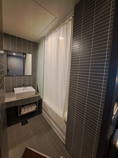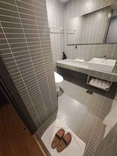 For the price, the bathroom was surprisingly spacious and spotless, and all the essentials were thoughtfully provided. There were plenty of towels, and I was genuinely impressed that they provided toothpaste and a toothbrush—something many hotels don’t offer anymore. The only small downside was that the body wash seemed sized for just one night, so it needed to be replaced daily. That said, housekeeping automatically replaced it each day without us having to ask, which I really appreciated. Two 500ml bottles of water were also replenished daily.