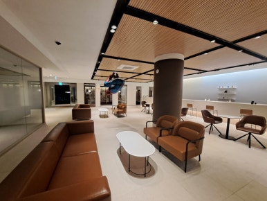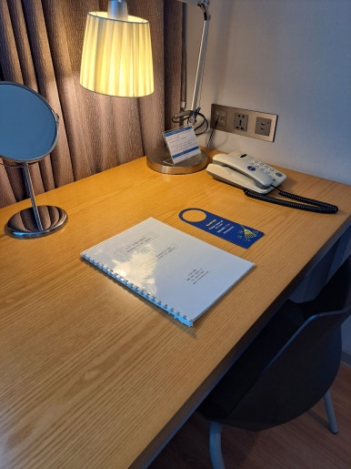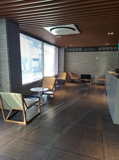 After picking up our key cards, we headed to the annex, which is located just to the right of the main building and easy to find. The annex is more focused on guest rooms than guest services, so the lobby isn’t very large. That said, access requires a key card, which made it feel secure. The annex lobby was compact but clean and nicely designed—perfect for waiting a few minutes after calling a taxi. There was a water dispenser in one corner and a high table where you could do some light work.