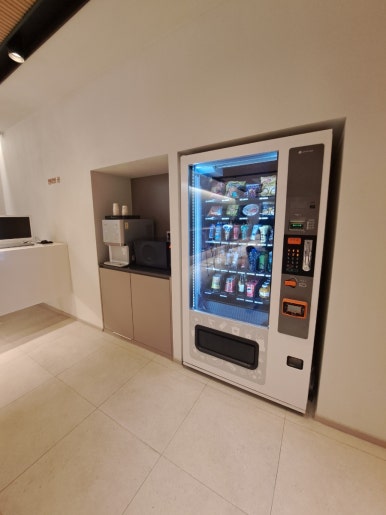 We checked in at the main building, where the lobby was spacious and well-maintained. There was a luggage storage area next to the check-in counter, which we used on our last day after checking out so we could explore a bit more. Next to it was a small reading nook—not many people seemed to use it, but since it was somewhat tucked away, it looked like a nice spot to sit and write for a while. On the opposite side of the lobby, there were two vending machines selling drinks and light snacks. One night, we grabbed some cup noodles when we got hungry, and I also ended up getting my morning coffee there on our third day.