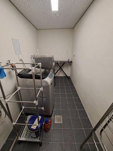 The top floor (6th floor) of the annex is a rooftop area, and part of it is dedicated to a laundry room. There’s a top-loading washing machine, a dryer, a small washer for lighter loads, and even an iron. On our last day, we gathered all our laundry and took care of everything at once. The facilities are free to use between 8:00 a.m. and 10:00 p.m., which was incredibly convenient.